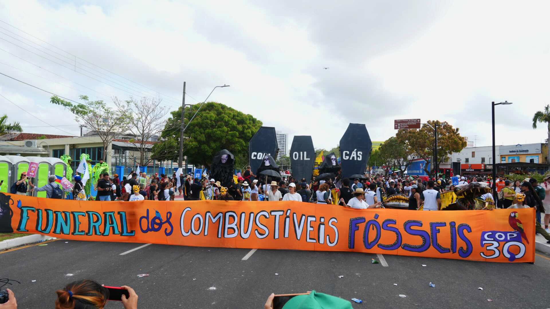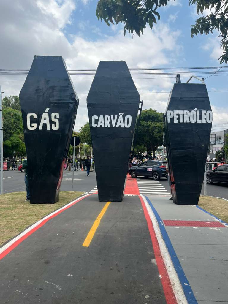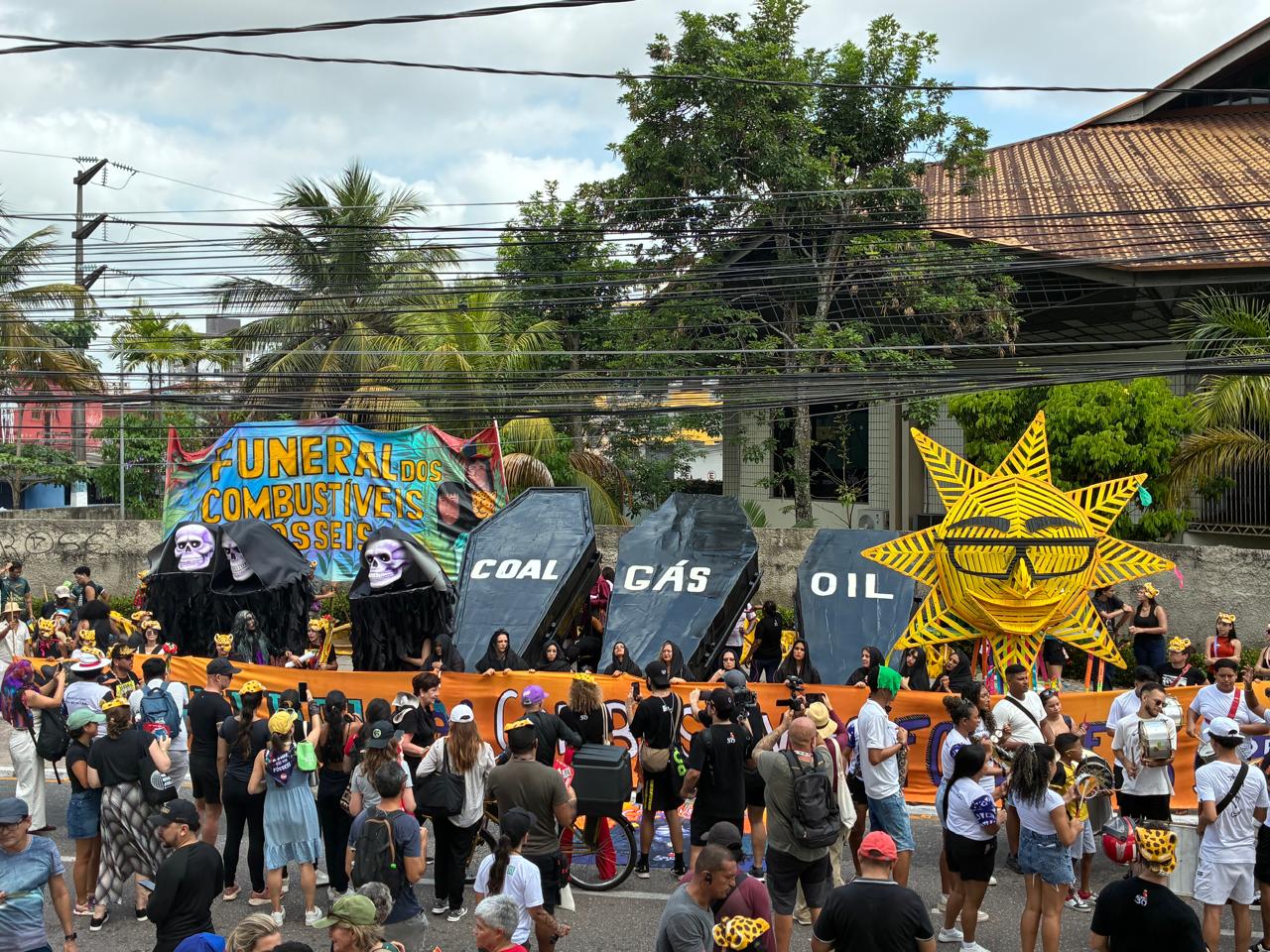 La performance —con ataúdes gigantes representando carbón, petróleo y gas, soles y aerogeneradores, más de 80 jaguares performáticos, una serpiente de 30 metros y más de 100 artistas— simbolizó el inicio del fin de la era fósil. El evento fue impulsado por la Alianza Potência Energética, en colaboración con la Cúpula de los Pueblos, la dirección artística del Auto do Círio y la Escuela de Teatro y Danza de la Universidad Federal de Pará.
